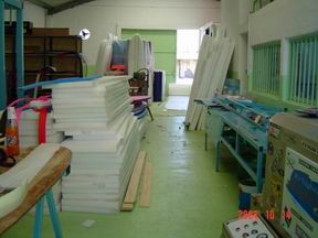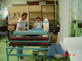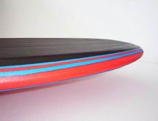 Foto: el interior de las tablas GARZA Softboards: shape terminado con sus dos almas, listas para ser recubiertas con las laminas de Espuma de PoliEtileno Reticulado para su terminacion. Las quillas son de goma y por lo tanto no te podes cortar con ellas, son practicamente inofensivas en comparacion a las quillas de fibra de carbono de las tablas de surf regulares. Ademas de las almas, se pegan cuatro hileras de bordes de cada lado, de espuma de PE (poli-etileno) de alta densidad que le dan aun mayor dureza y resistencia, trabajando como almas externas. Las tablas pueden ser reparadas con siliconas o poxipol en caso de producirse agujeros o roturas, es dificil que se quiebren pero no imposible, dependiendo del uso al que se exponga. Sus colores se mantienen con el transcurso del tiempo a diferencia de las tablas de fibra que se van poniendo amarillas con el efecto de los rayos ultraviolestas. Algunos detalles constructivos y de terminación: