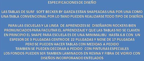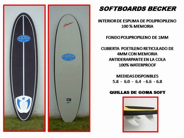 "Aprender a surfear no tiene que ser dificil" txt: 3 quillas + Garza fotos: Garza Consulta de precios, disponibilidad y catalogo: garzasurf25@yahoo.com.ar Les presentamos un producto de fabricación Nacional y de calidad Internacional: las nuevas tablas de surf del tipo "Soft-Board" marca Garza SOFT SURFBOARDS. De la mano del shaper y "hand-craft man" argentino Garza (quien cuenta con más de 7 000 tablas shapeadas a mano en los ultimos 20 años, experiencia en la fabricacion de Bodyboards (Manta y Morey Boogie) y varias temporadas de trabajo en las mejores fábricas de la Industria del Surf de San Diego-California (USA), llega a Argentina la tecnología y el Know-How requeridos para la fabricación de tablas del tipo Soft-board de primera calidad. Las materias primas empleadas son importadas directamente de USA, Alemania y Brasil. Los nuevos materiales utilizados en 2008 no absorben agua, son más livianos y tienen una mayor resiliencia, es decir que recuperan su forma original luego de sufrir deformaciones ante golpes o esfuerzos. El peso promedio de una tabla es menor a 3 Kg.!