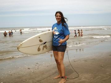 Surfer Girls: el lado femenino del deporte. txt: 3 quillas fotos: colaboracion de lectores y créditos según el caso Cada vez son más las chicas que se estan acercando al surf. Compartan la experiencia junto a sus amigas, familia, sus amigos y sus novios... Es hora de mirar el surf desde adentro del agua! Y sí, amigos, ellas pueden volar, doblar con fuerza tirando agua para todos lados, y surfear mejor que nosotros los varones! Invitamos a todas las mujeres que se divierten en las olas a enviarnos via e-mail sus fotos en el agua, para ser publicadas aqui mismo. Foto (Crédito: Grupo Firbas) de la tablista peruana Alexia Jerí de quince años de edad, que hoy 1/2/2009 alcanzó la semifinal del Mundial WQS presentado por RipCurl y que se llevó a cabo en San Bartolo. Alexia con este resultado, culminó en un meritorio tercer lugar, por detrás de Analí Gómez (2da) y Sofía Mulanovich (1ra). La próxima fecha en la que tomará parte Alexia será la segunda del Tour Latino, a realizarse en dos semanas en Montañita, Ecuador.