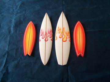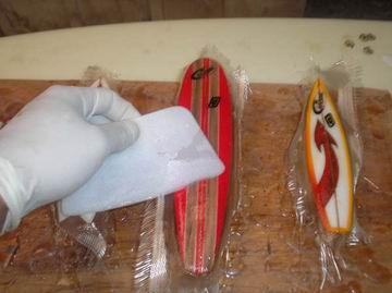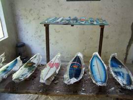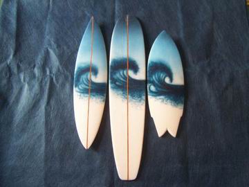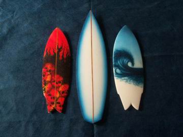 MINIMODEL: Surfboards Replicas a escala en miniatura. Por Alejandra Montero, Punta del Este, R.O. del Uruguay. txt: Alejandra Montero + 3 quillas - pix: Alejandra Montero Esta nueva sección se abre gracias al aporte de Alejandra Montero desde la hermana y vecina República Oriental del Uruguay, quien comparte con nosotros un trabajo artesanal, de réplica en miniatura de tablas de surf. Son ideales para regalar, pedir la réplica de tu tabla favorita e inmortalizarla para poder exhibirla en tu cuarto o escritorio, o para decoración en general. El proceso es tal cual el de una tabla grande, por lo que a simple vista y sin escala de referencia es fácil confundirse! Más abajo: fotos de tablas en proceso, y de tablas terminadas. Medidas: entre 25 y 30 cm. aproximadamente. Ideal para decorar Surf Shops, livings, habitaciones y porque no, oficinas. Es importante destacar que se utilizan los descartes de foam de la fabricación de tablas de surf de tamaño normal, por lo que la actividad contribuye de alguna forma a evitar la deposición de material no biodegradable, como lo es el poliuretano. Contacto: ALEJANDRA MONTERO MOREIRA jasmimmontero@hotmail.com Shapeando y Lijando